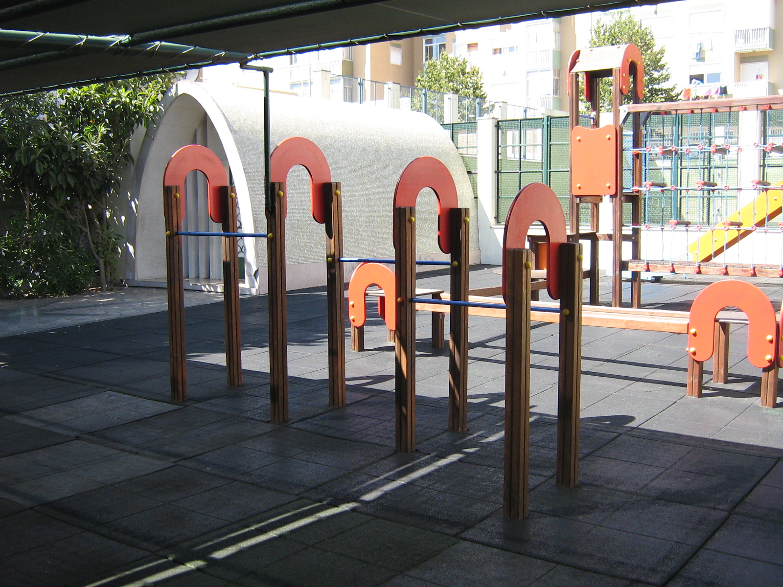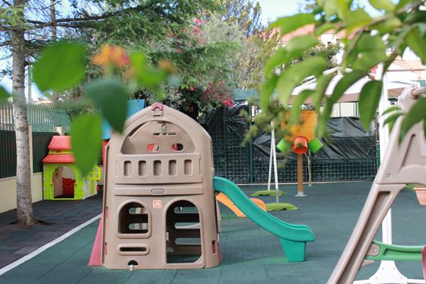 No exterior existem seis parques, pavimentados com um material borrachoso de 43mm de espessura, conferindo alto conforto e segurança às crianças e tendo diversos equipamentos adaptados às necessidades físico- motoras dos seus utilizadores. Existe também um campo polidesportivo, marcado para a prática desportiva. Os espaços encontram-se decorados com canteiros e floreiras, criando uma harmonia que contribui para valorizar e incentivar o respeito e o gosto pela Natureza.